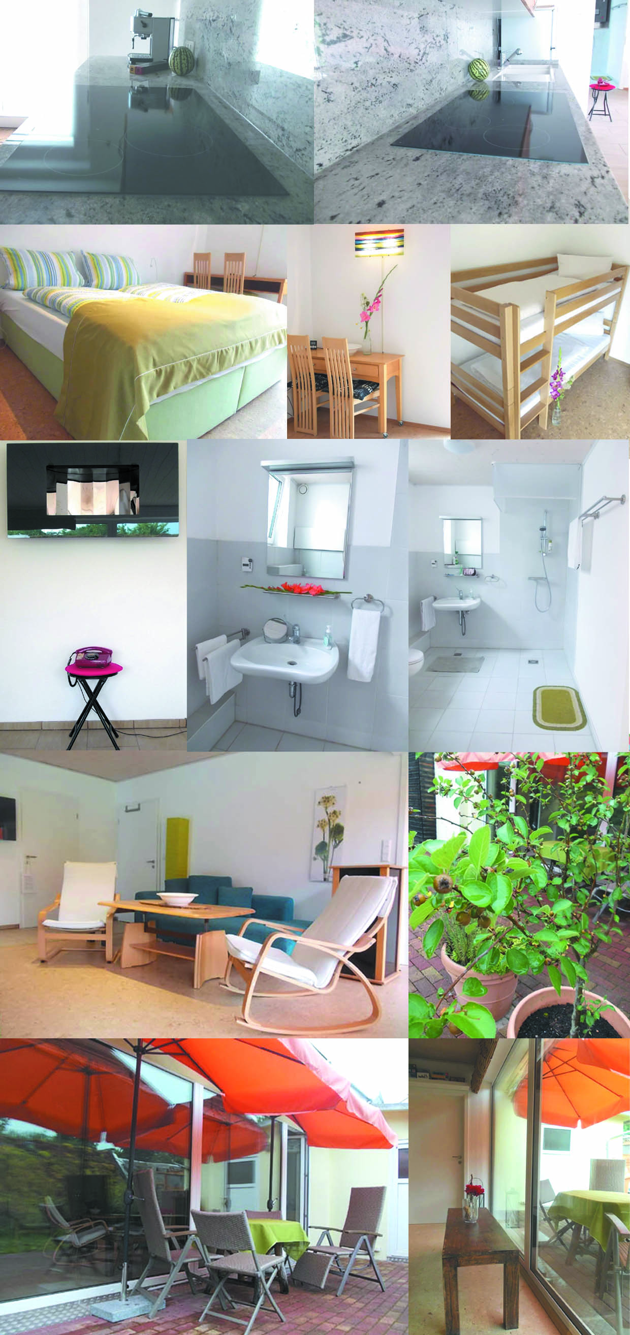 Die Räume haben Holzdecken, die Wände sind verputzt und der Boden ist aus Kork oder gefliest. Die Möbel sind überwiegend aus massiver Buche.